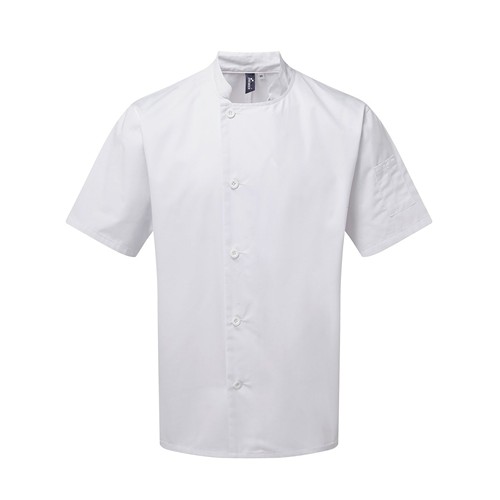 65% poliestere, 35% cotone lato anteriore, 100% poliestere lato posteriore. Camicia moderna da cucina a maniche corte da usare su altri indumenti, con inserto sul retro in tessuto Jersey a rete che garantisce libertà di movimento e traspirabilità, taglio diritto, bottoni a pressione nascosti che possono aumentare la circonferenza della camicia una volta aperti, un taschino a filetto sul lato sinistro del petto e uno sulla manica sinistra. Lavaggio a 60°C. Label, certificazioni e norme: Questo prodotto è coperto da una o più certificazioni, etichettature o norme applicabili. Per ulteriori informazioni, contattate il vostro referente commerciale.
