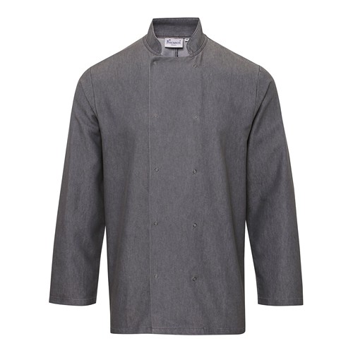 Bianco: 65% poliestere, 35% cotone twill, Denim: 60% cotone twill, 40% poliestere. Giacca da chef con chiusura a zip, colletto alla coreana, taschino doppio per penne sulla manica sinistra, tessuto a contrasto sotto le braccia. Care instructions : Lavaggio in lavatrice a 60° - Non candeggiare - Asciugatura a bassa temperatura - Stirare max 150° C Label, certificazioni e norme: Questo prodotto è coperto da una o più certificazioni, etichettature o norme applicabili. Per ulteriori informazioni, contattate il vostro referente commerciale.