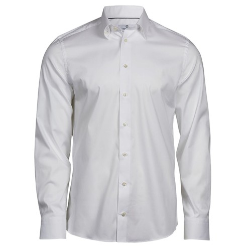 Cotone popeline: tessuto liscio e resistente. Tessuto morbido al tatto e piacevole da indossare. 65% poliestere / 35% cotone popeline con filati tinti. Camicia a manica lunga con bottoni sullla manica. Bottone sul collo. Pince su petto e schiena. Altre caratteristiche: Facile da stirare
