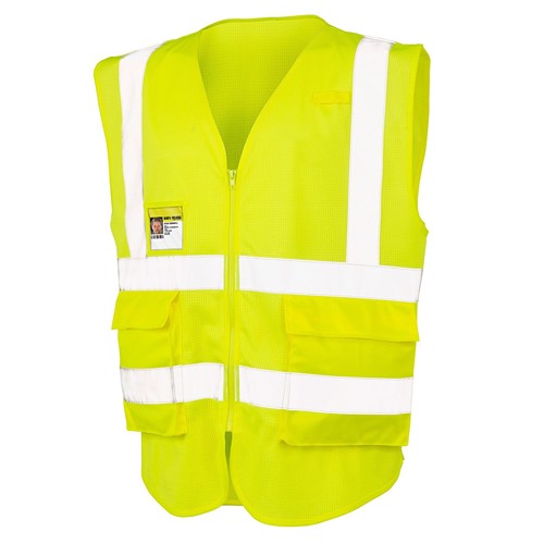 100% poliestere. Gilet ad alta visibilità per bambini con simpatici motivi animali, l'area della pancia degli animali offre una superficie facile da stampare e le strisce riflettenti sono segmentate a forma di tracce di animali, pratica chiusura in velcro sul lato e sulla spalla, tessuto leggero, certificato secondo EN 17353.