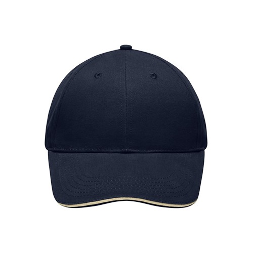 Cappellino a 6 pannelli. Misura regolabile mediante chiusura a strappo. Pannello frontale con rinforzo amovibile. 100% cotone. Cappellino sandwich 6 pannelli con profilo basso. Occhielli di aerazione ricamati. Pannello frontale con rinforzo amovibile. Visiera preformata con 6 impunture. Misura regolabile mediante chiusura a strappo. Forma interna in cartone per una migliore presentazione.