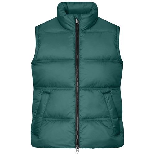 100% nylon riciclato, fodera e imbottitura, 100% poliestere riciclato. Gilet imbottito leggero e impermeabile da donna, con cuciture orizzontali. Dotato di tasche laterali con zip, tasca interna e possibilità di ricamo. Può essere ripiegato nella sua sacca per un comodo trasporto. Care instructions : Lavaggio in lavatrice a 40° - Non candeggiare - Non usare asciugatrice - Stirare max 150° C Label, certificazioni e norme: Questo prodotto è coperto da una o più certificazioni, etichettature o norme applicabili. Per ulteriori informazioni, contattate il vostro referente commerciale.